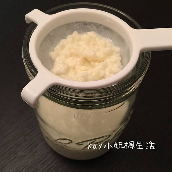 3️⃣如此重覆步驟2️⃣直到表面有似優格的凝固體,就可以濾出菌母,然後再加入1杯半的牛奶,再放置24小時。如果菌母持續每24小時就可以將牛奶表面凝固成優格狀,這樣乾菌母就可以說是活化成功。