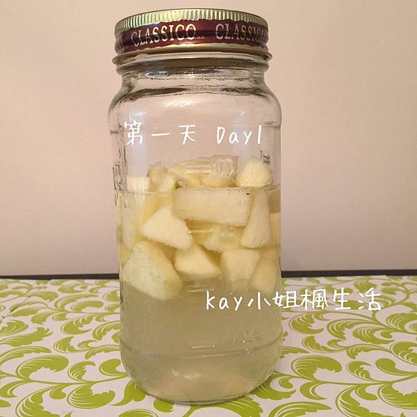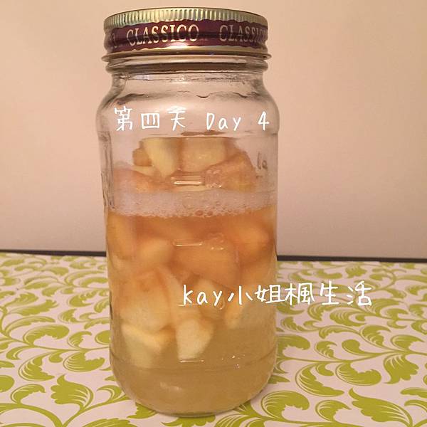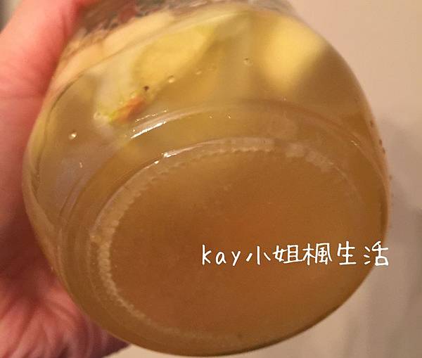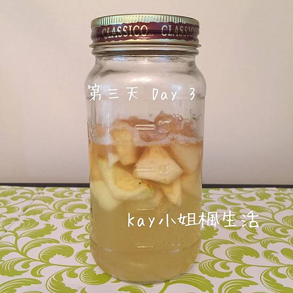 。第一天,將所有材料放入已養過酵母,用完酵液的瓶子內,用力搖晃,檢查瓶底所有糖完全混合沒有沈澱,放置溫暖的地方24小時。