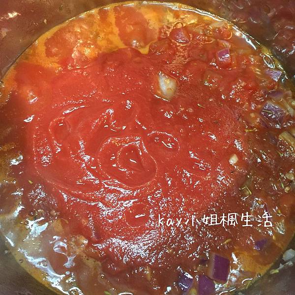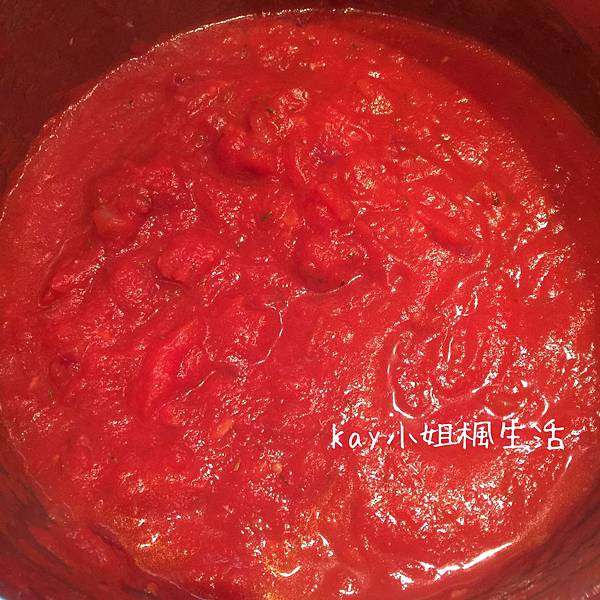 。做好的番茄醬可以直接淋在義大利麵上面享用,美味喲~