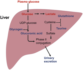 葡萄醣醛酸(Glucuronic acid)是人體肝臟能夠自我製造的一種醣醛酸(Uronic acid),肝細胞含有非常活躍的葡萄醣醛基轉移酶,能夠催化葡萄醣醛酸轉移到體內多種毒素上,如塑膠微粒,藥物、毒藥、激素以及重金屬等。而這個過程即為葡萄醣酸化(glucuronidation),增大有毒化合物的水溶度,再經由腎臟排泄出體外,是肝臟在排毒功能生物轉化作用中最普遍的一種反應。因此Kombucha康普茶被認為有助於提升人體的排毒功能,降低肝臟的壓力。